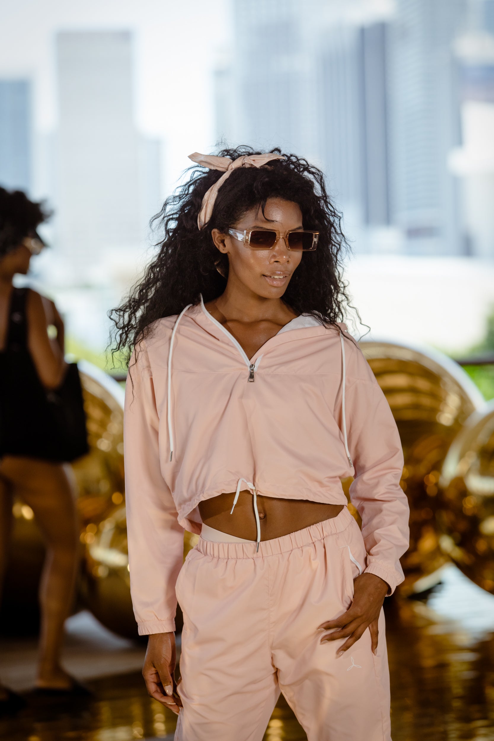 Adjustable drawcords on the hood and waist